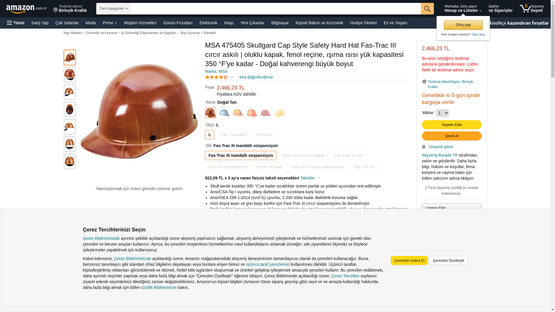 MSA 460409 CAP,SKULLGARD,S-O,STD,NAT,L/B C/H