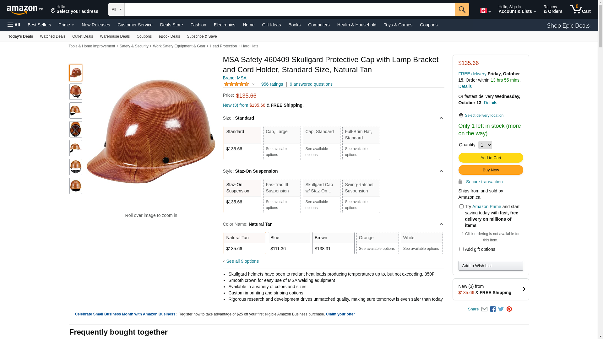 MSA 460409 Skullgard Cap Style Safety Hard Hat with Staz-on Pinlock Suspension, Lamp Bracket and Cord Holder | Made of Phenolic Resin, Radiant Heat Loads up to 350F - Standard Size in Natural Tan