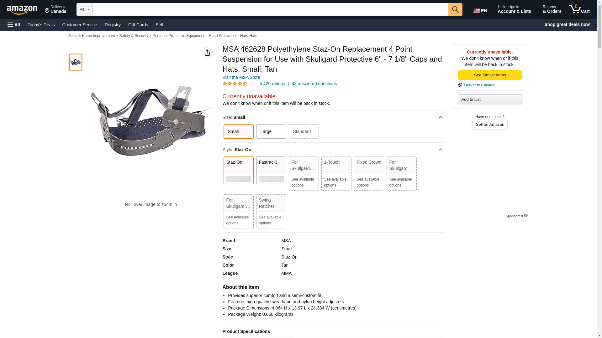 MSA 462628 Staz-On Replacement 4 Point Suspension -Size: Small, Skullgard Helmet Accessory, Cap/Hat-Style Hard Hat Suspension, Adjustable Component, Replaceable & Durable Gear