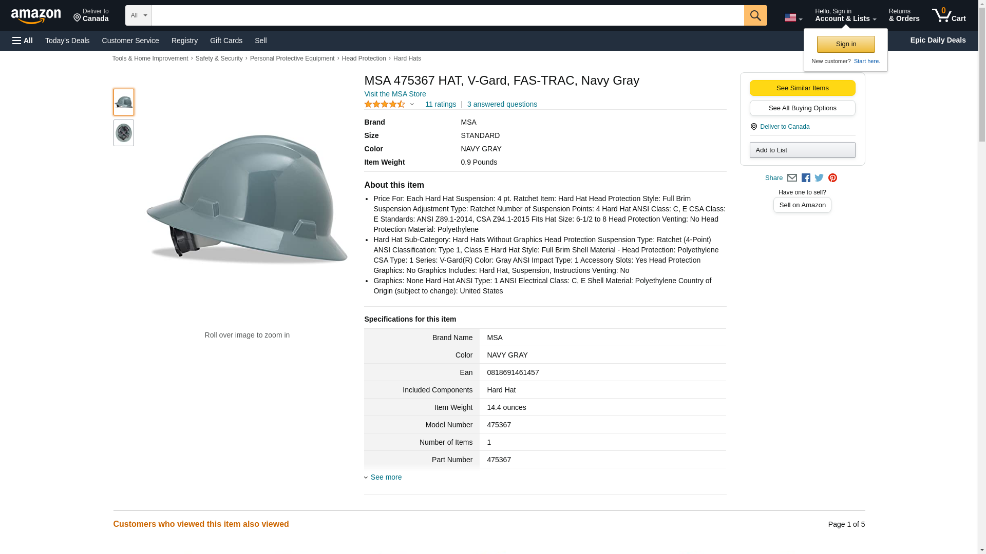 | Feature | Price For: Each Item: Hard Hat Color: Gray Graphics: None Standards: ANSI/ISEA Z89.1-2014 Class E, CSA Z94.1-2005 Class E Style: Full Brim ANSI Type: 1 Hard Hat Sub-Category: Hard Hats Without Graphics ANSI Class: E Accessory Slots: Yes Fits Hat Size: 6-1/2 to 8 Shell Material: Polyethylene Venting: No Suspension: 4 pt. Ratchet |
