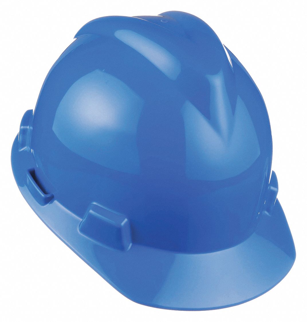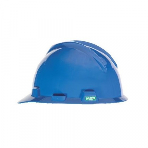 MSA 477478 V-Gard Cap Style Safety Hard Hat With Fas-Trac III Ratchet Suspension | Polyethylene Shell, Superior Impact Protection, Self Adjusting Crown Straps - Small Size in Blue