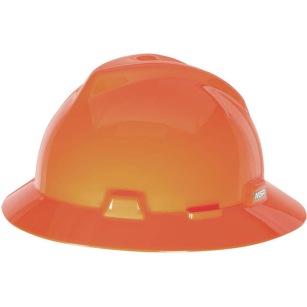 MSA 10021292 Hi-Viz Orange V-Gard Polyethylene Full Brim Hard Hat With Fas Trac Ratchet Suspension, (Case of 10)