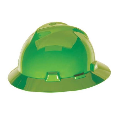 MSA 815562 V-Gard Slotted Full-Brim Protective Hat with Staz-On Suspension, Bright Lime Green