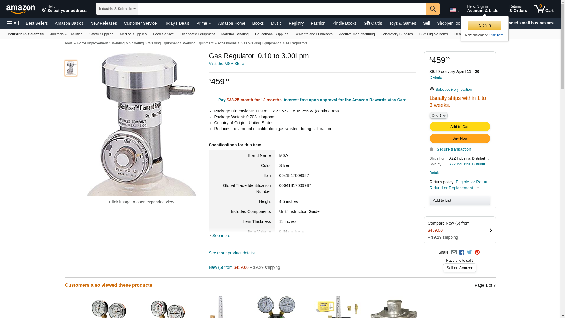 | Feature | Price For: Each Valve Type: Automatic Flow Rate: 0.1 to 3Lpm Item: Gas Regulator Material: Nickel Plated Polished Aluminum Country of Origin (subject to change): United States |