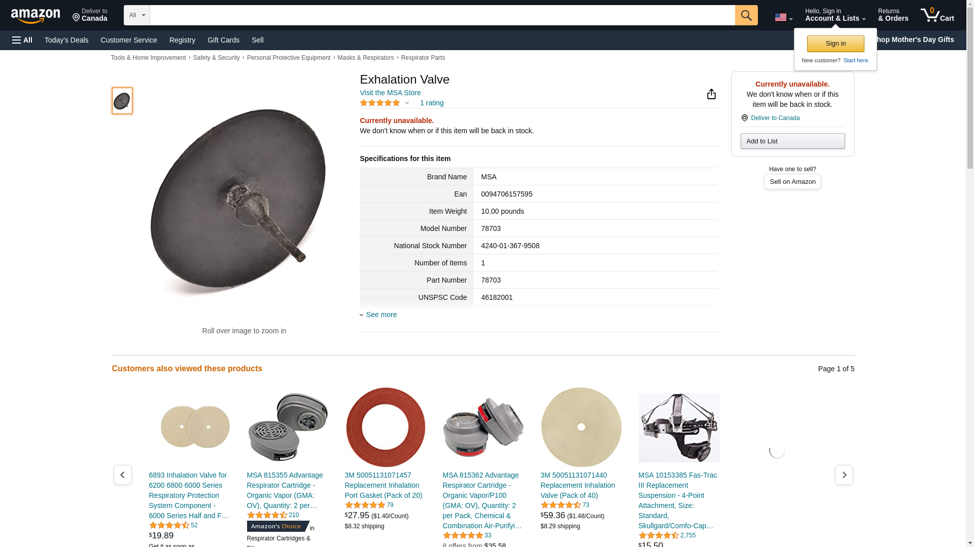 MSA 78703 Flapper Valve for Comfo Classic and Comfo II Half Mask Respirator (Pack of 1000)