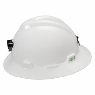 MSA 815009 V-Gard Slotted Full-Brim Protective Hat with Fas-Trac Suspension, Lamp Bracket and Cord Holder, White