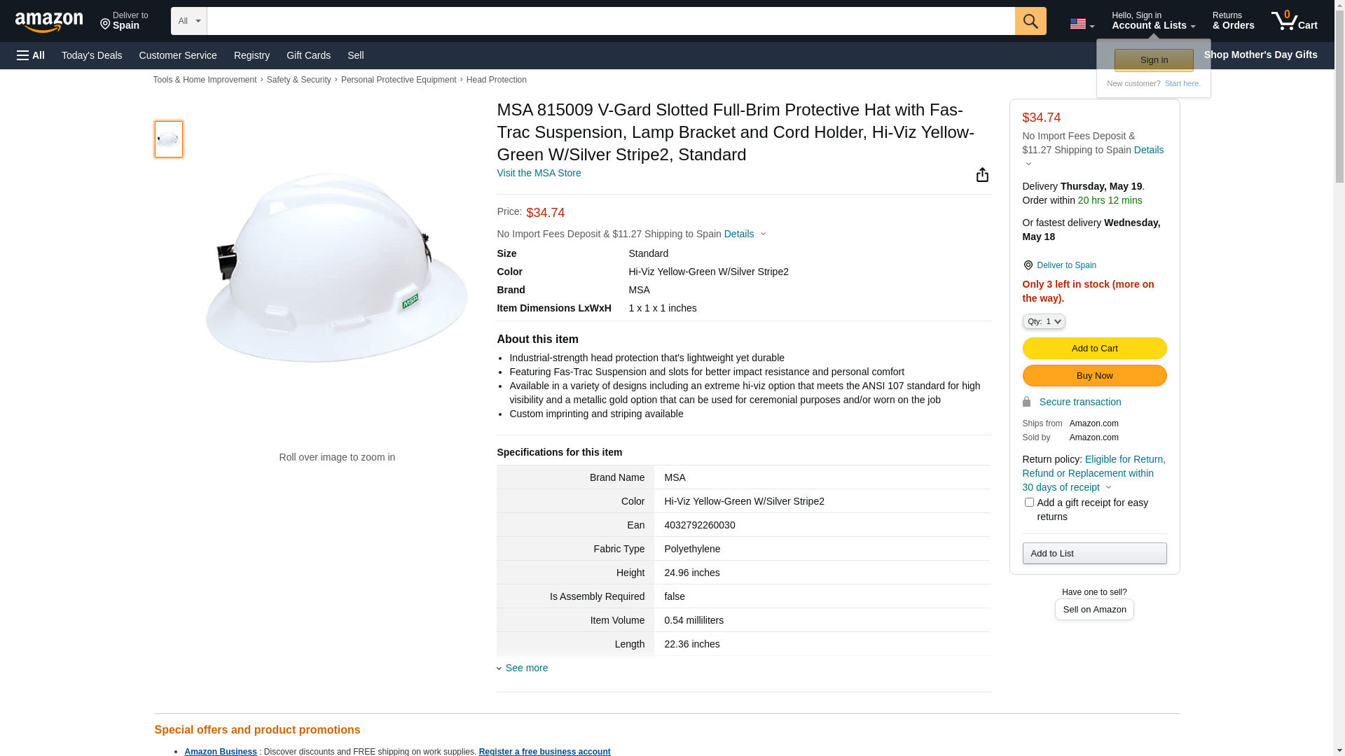 | Safety Equipment Store | MSA-815009 | 20 | -2 | 20 | 1 @ $56.31 |
