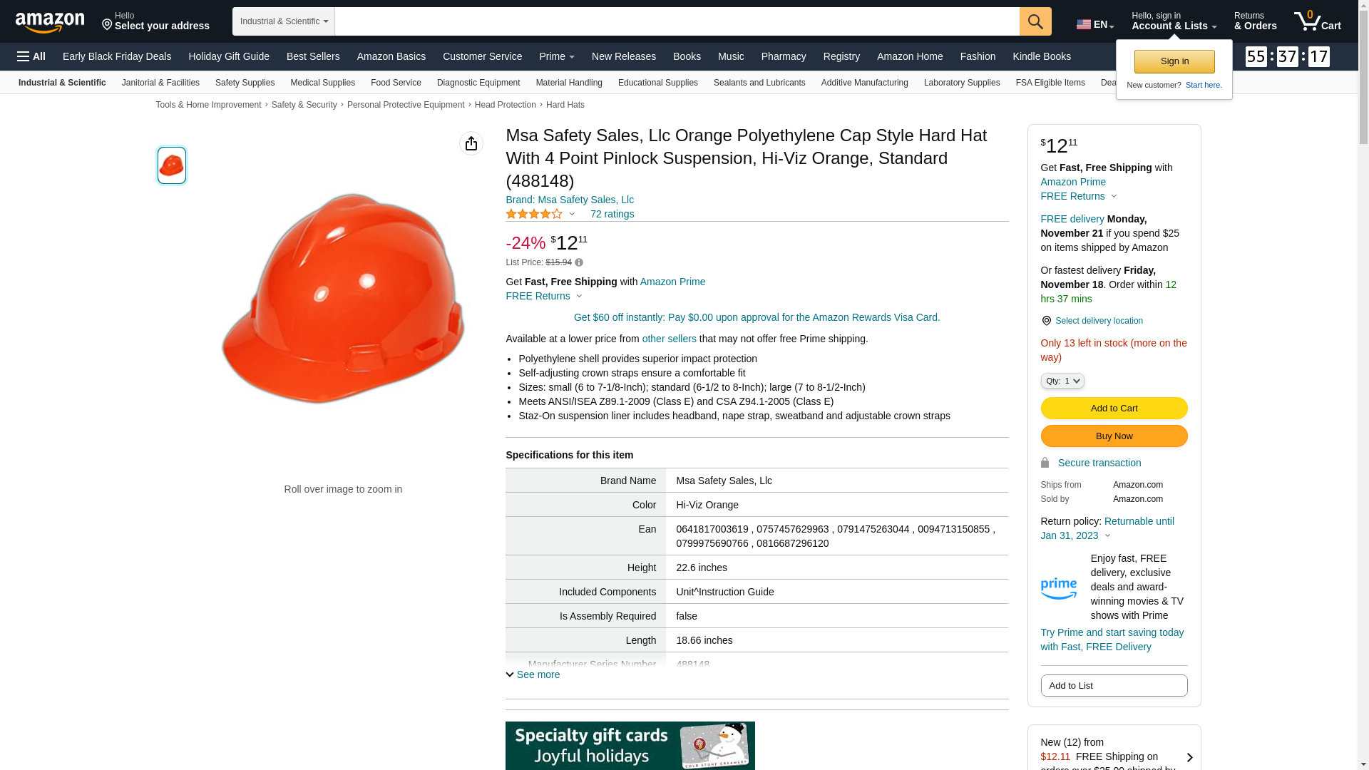 | Safety Equipment Store | MSA-488148 | 20 | -2 | 20 | 1 @ $11.63 |