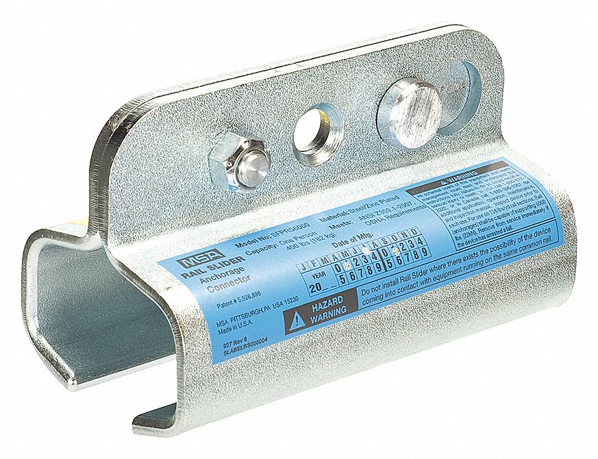 MSA 10030608 Galvanized Steel Rail-Slider Anchorage Connector for Use on Train/Crane Type Rail