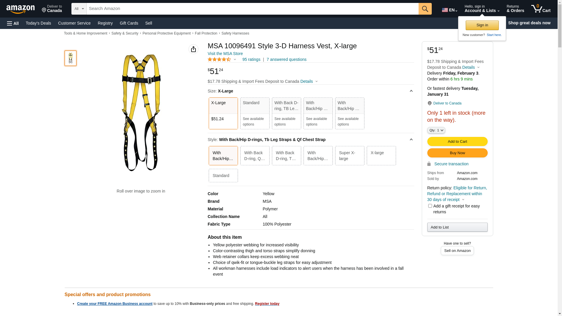 SEPTLS45410072492 - Msa Workman Harnesses - 10072492