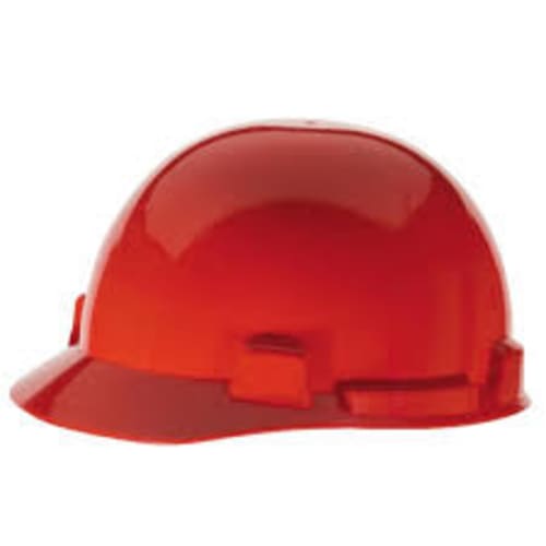 MSA 10074071 SmoothDome Cap Style Safety Hard Hat with Fas-Trac III Ratchet Suspension | Polyethylene Shell, Superior Impact Protection, Self Adjusting Crown Straps - Standard Size in Red