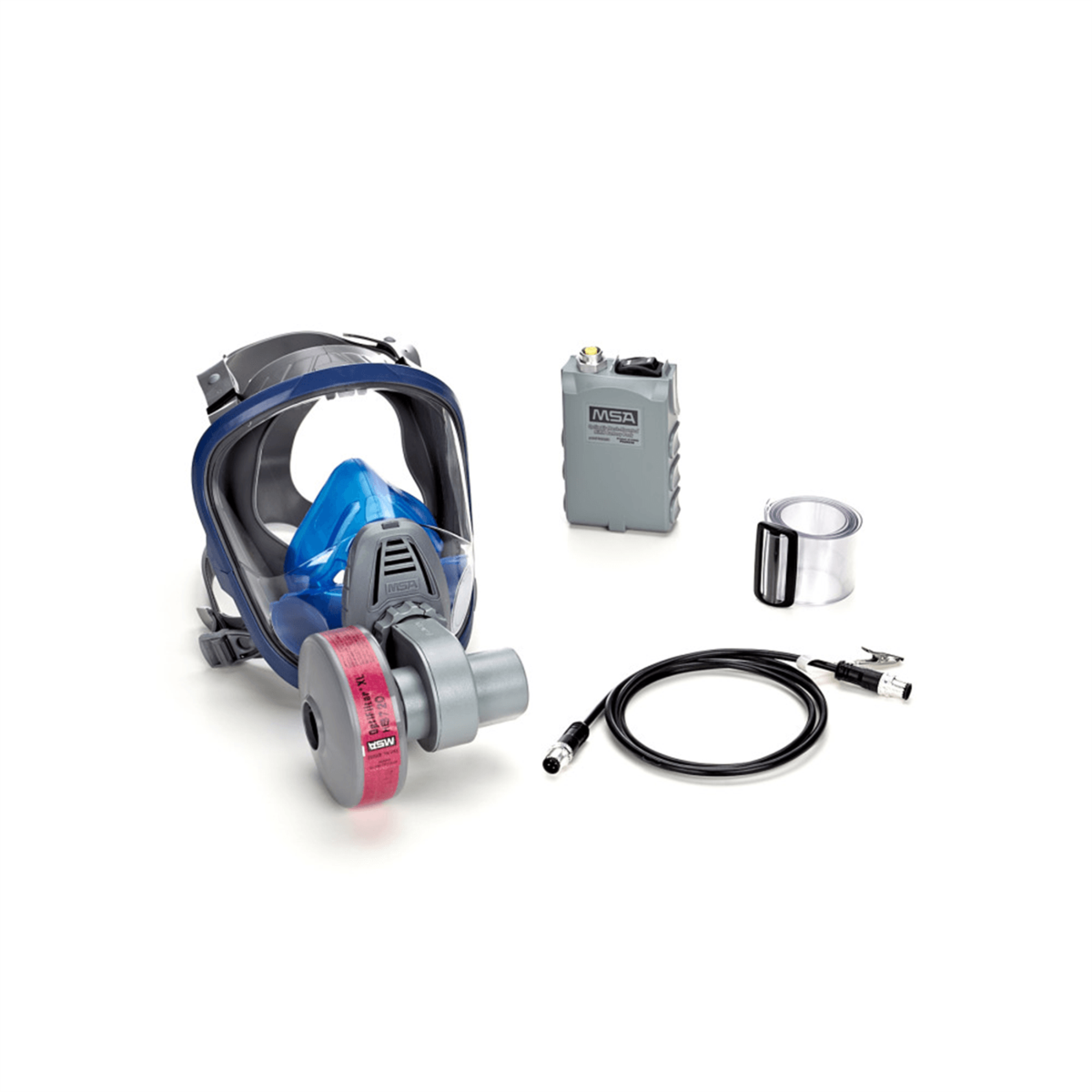 - EASY-TO-USE SAFETY ENHANCEMENT: Assembly threads onto facepiece inlet; does not impede vision or fit, connects to battery pack with heavy duty lockable stainless steel power cable connector, is low maintenance with easy decontamination, and was engineered to be as compact and lightweight as possible