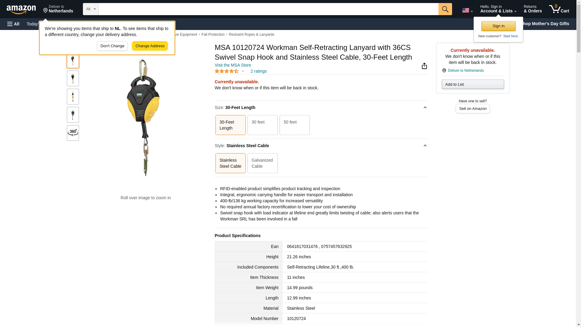 MSA 10120724 Workman Self-Retracting Lanyard with 36CS Swivel Snap Hook and Stainless Steel Cable, 30-Feet Length