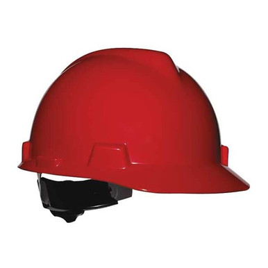 MSA 475363 V-Gard Cap Style Safety Hard Hat With Fas-Trac III Ratchet Suspension | Polyethylene Shell, Superior Impact Protection, Self Adjusting Crown Straps - Standard Size in Red