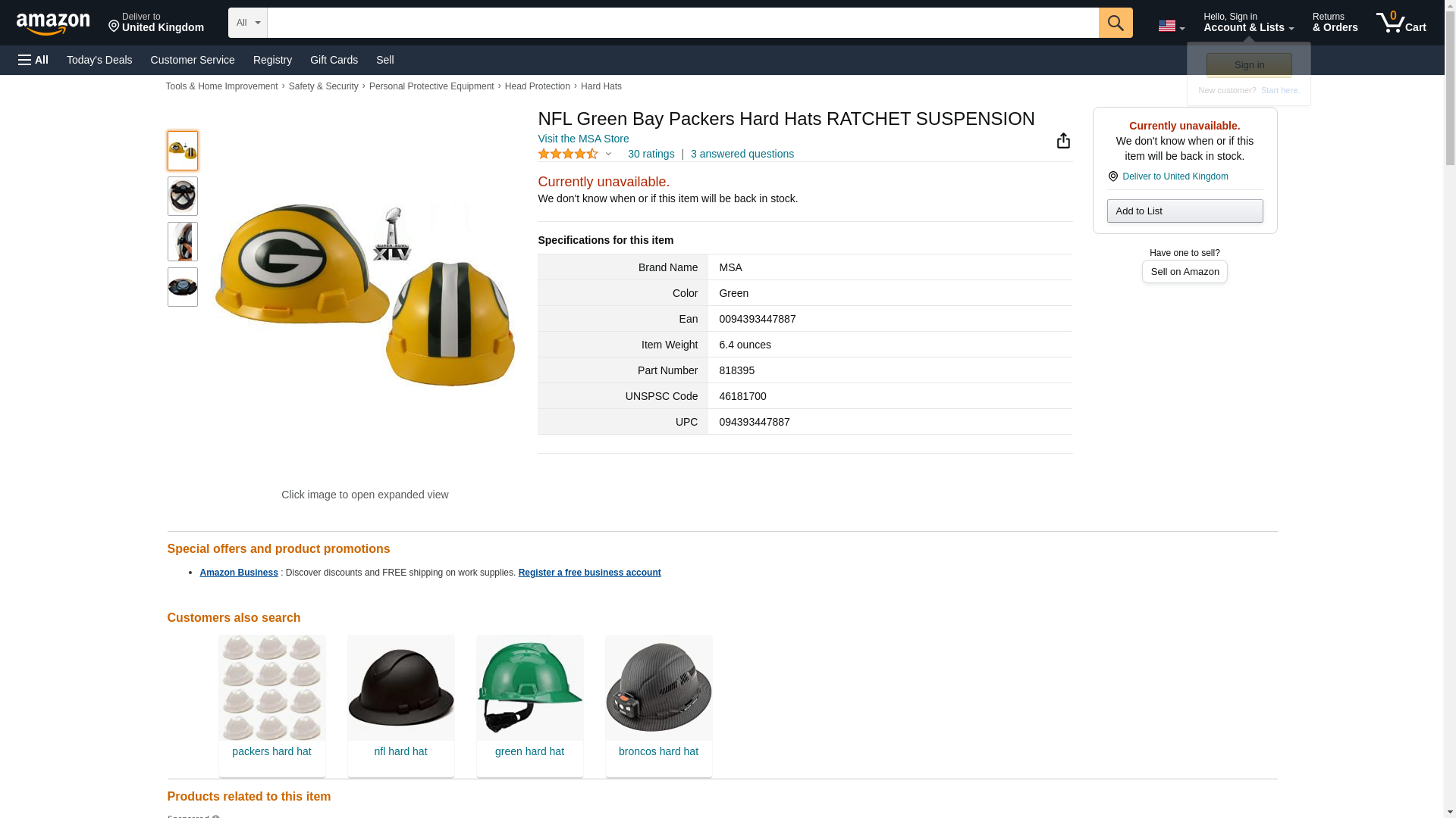 | Feature | MSA NFL V-Gard Class E Type I Hard Cap With 1-TouchTM Suspension And Green Bay Packers Logo |