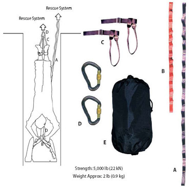 - Includes: adjustable lifting strap, adjustable victim strap, one pair of ankle harnesses, two carabineers, storage bag