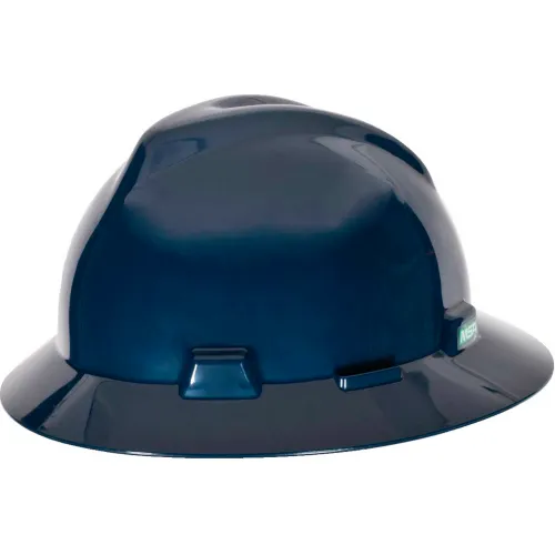 MSA 802975 V-Gard Full Brim Hard Hat with Fas-Trac III Suspension, Dark Blue, 1/Each