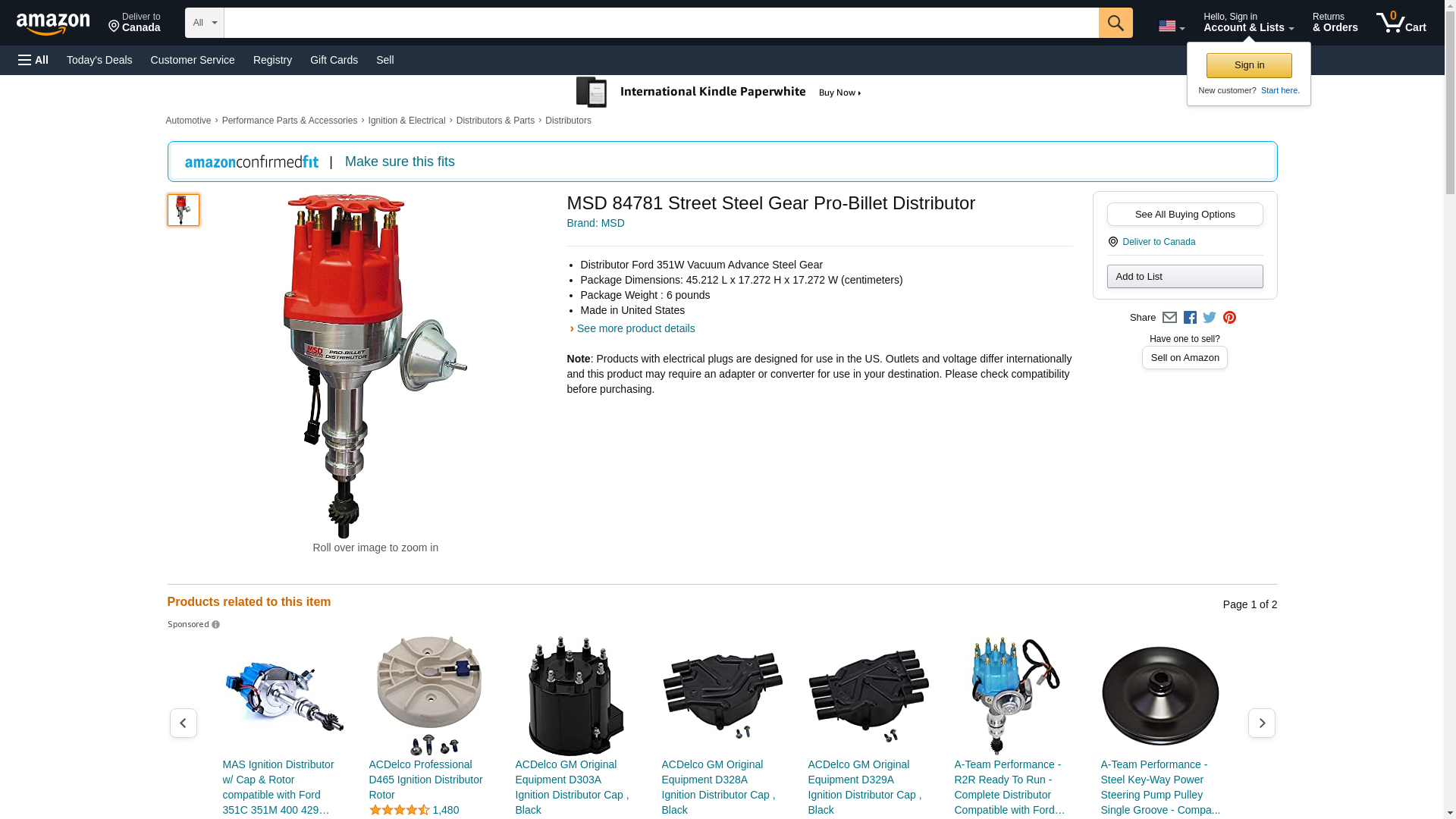 STREET PRO-BILLET WITH STEEL GEAR The Street models share the same features as the small diameter models, plus feature a vacuum advance. The Street Pro-Billet Distributors are the perfect choice for powerful engines that see plenty of street time. This canister provides improved economy and an accurate mechanical advance lets you dial-in an advance curve to match your driving needs. A magnetic pick-up produces accurate trigger signals that remain stable throughout the entire rpm range of your engine and is completely maintenance-free. Features Includes Steel Gear, compatible with hydraulic roller cams Must be used with an MSD Ignition Control Supplied with small diameter cap with HEI style terminals and race rotor (will accept 8441 Cap-A-Dapt) Nylon pads ensure smooth operation of the advance weights Advance weight pins are staked and tig welded to the plate Mechanical advance assembly can be locked out for crank trigger systems Advance plate and weights are fine blanked from chrome moly steel and QPQ coated for friction reduction Polished steel shaft is QPQ coated and guided by a sealed ball bearing Maintenance-free magnetic pickup and precision reluctor create stable trigger signals throughout the rpm range CNC machined billet aluminum housing and billet aluminum base Vacuum advance canister for improved economy (can be locked out) Easy-to-adjust mechanical advance with supplied springs and stop bushings Billet housing is 5/8&rdquo smaller in diameter than stock Ford distributors CARB E.O. Approved SPECIFICATIONS Emission Code 3 Product Type Distributor Color Red