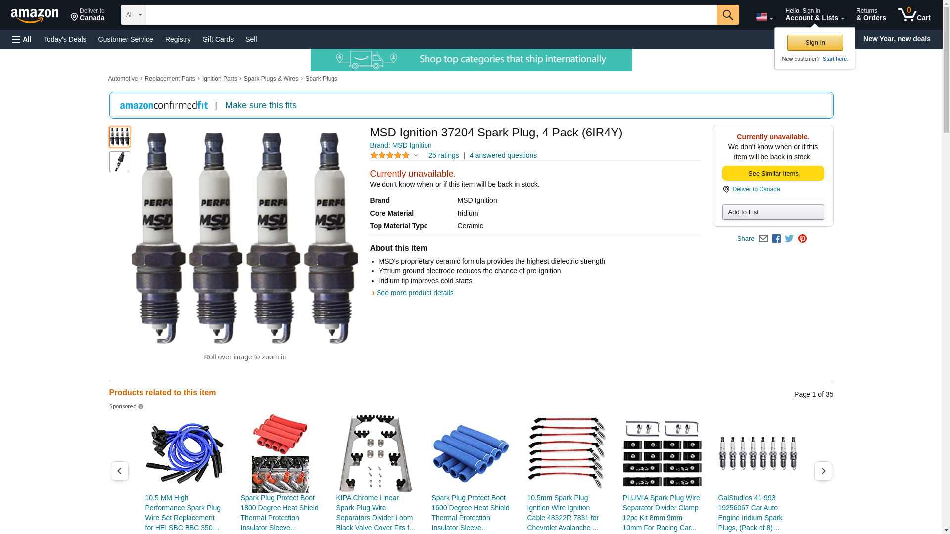 MSD Ignition 37204 Spark Plug, 4 Pack (6IR4Y)
