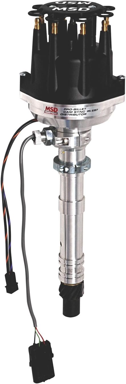 - MSD Ignition 2357 Pro-Billet Cam Sync Distributor; Incl. Adj. Cam Sync Pickup/Magnetic Pickup/2 pc. Adj. Rotor; Chevy V8; Not Legal For Sale/Use On Pollution Control Veh; Steel Gear;