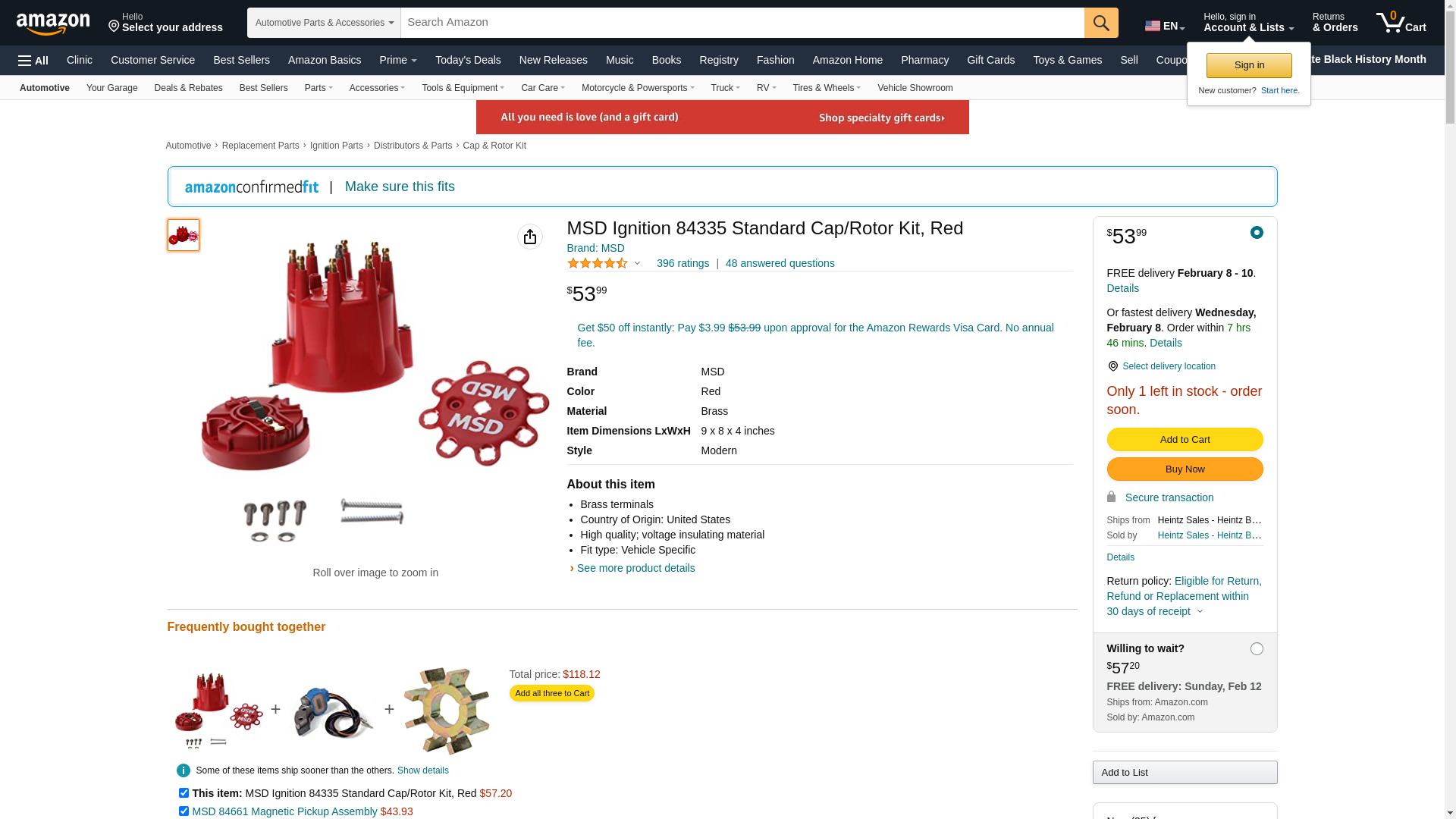 MSD Ignition 84335 Standard Cap/Rotor Kit, Red