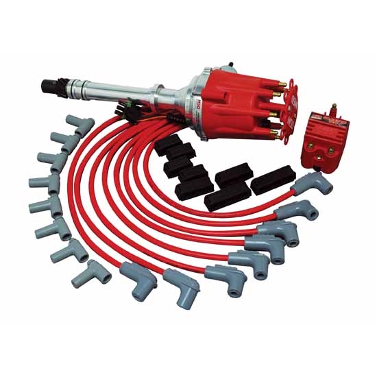 Everything you need to fire up your new crate engine!. Pro-Billet HEI or Ready-to-Run Distributor. 8.5mm Super Conductor Plug Wires and Pro-Clamp separators. Billet Hold-Down Clamp is also supplied.