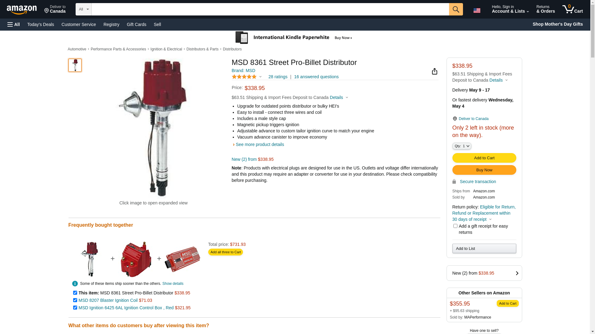 ![]() automotivestuff.com | MSD-8361 | 1 | -2 | 1 | 1 @ $373.95 |