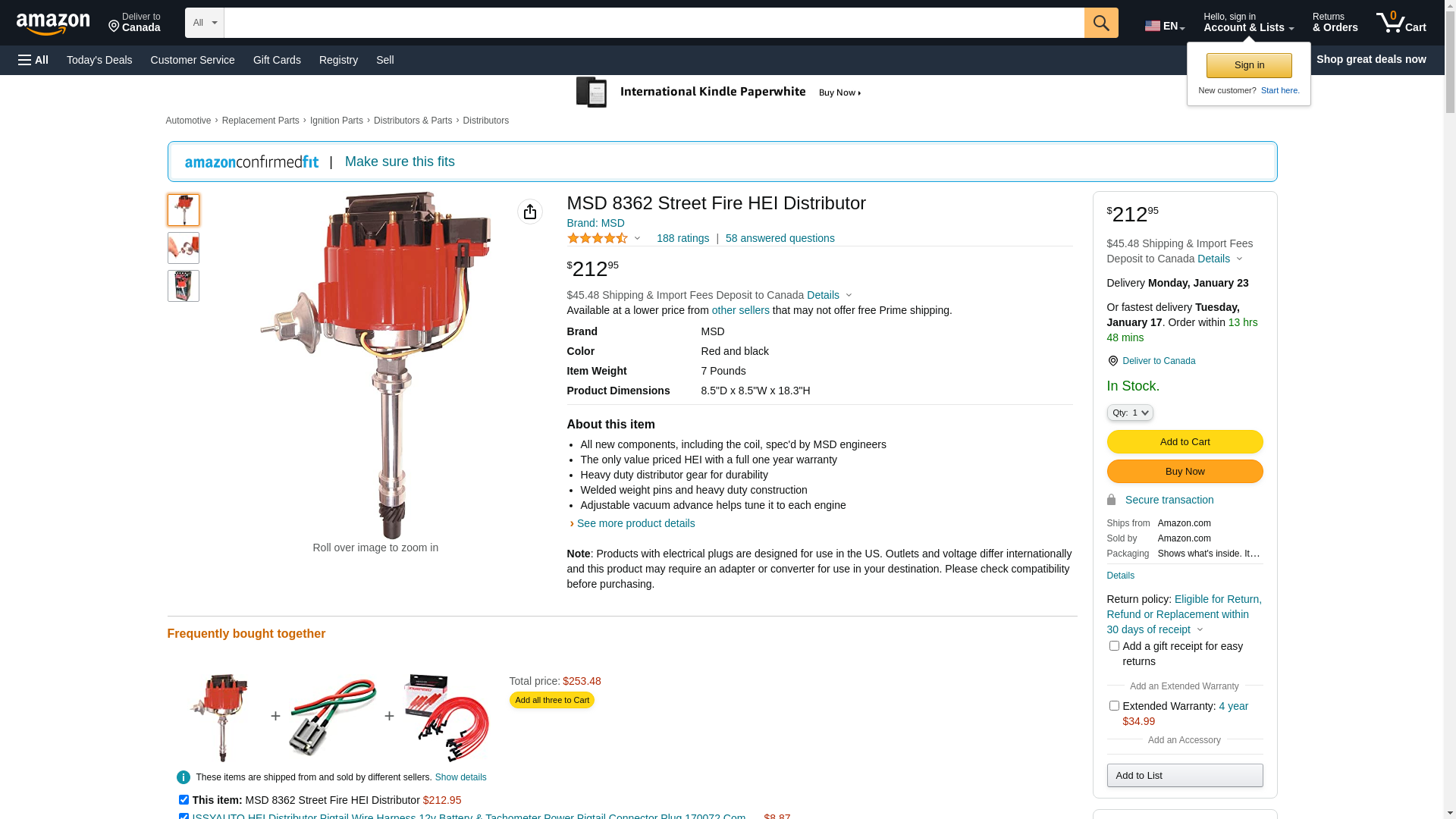 ![]() automotivestuff.com | MSD-8362 | 1 | -2 | 1 | 1 @ $212.95 |