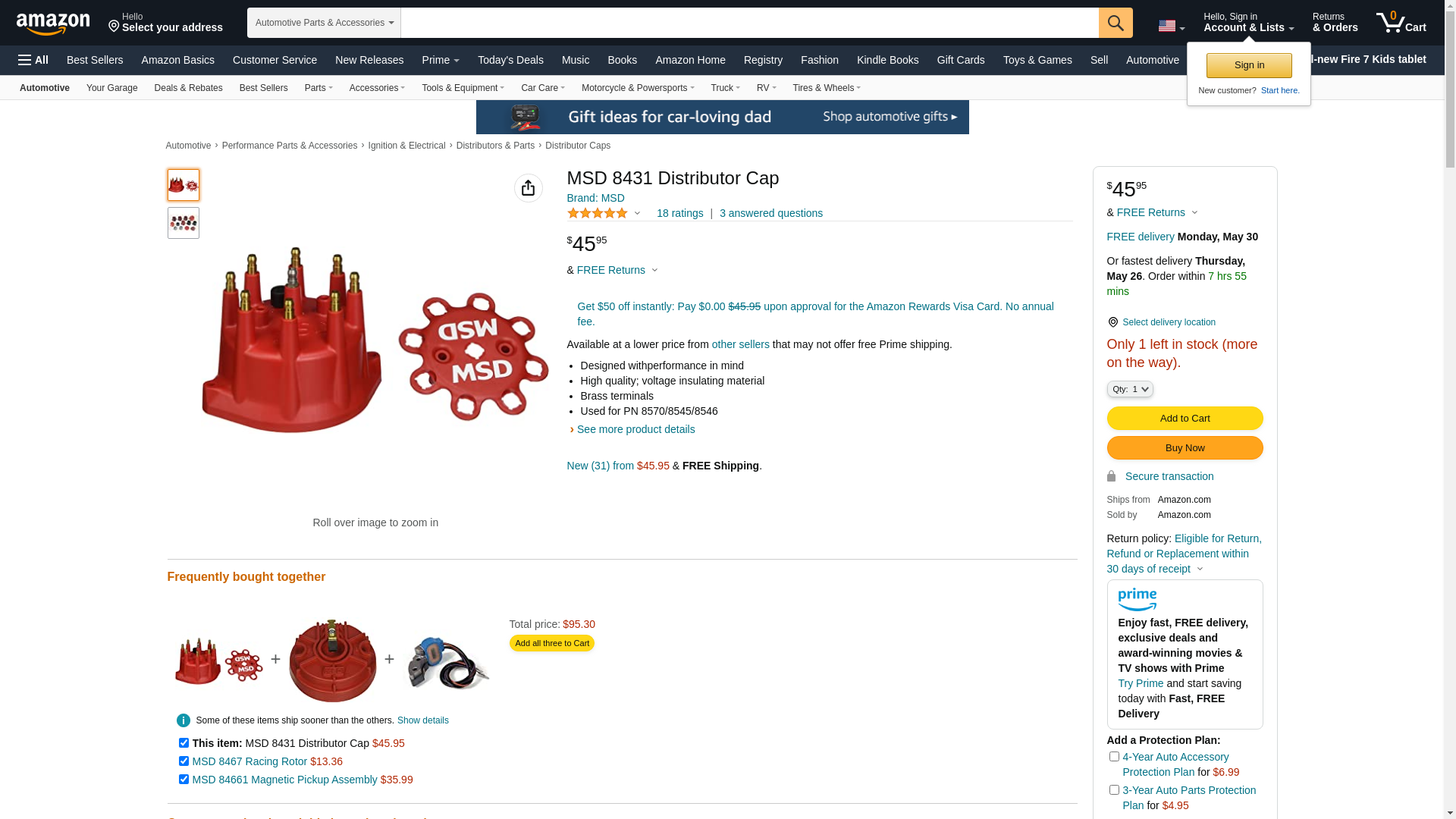 ![]() automotivestuff.com | MSD-8431 | 1 | -2 | 1 | 1 @ $58.66 |