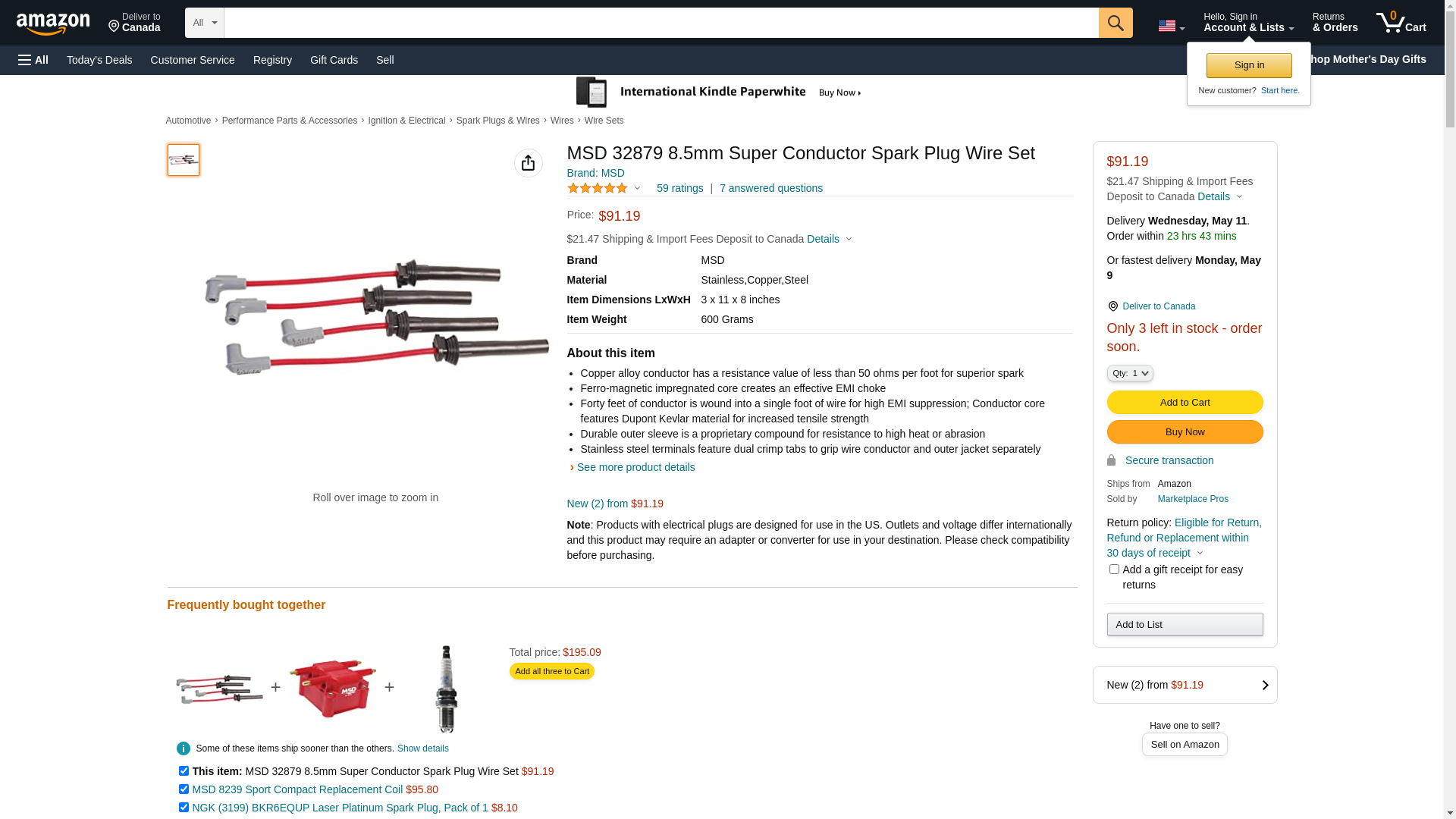![]() automotivestuff.com | MSD-32879 | 1 | -2 | 1 | 1 @ $95.75 |
