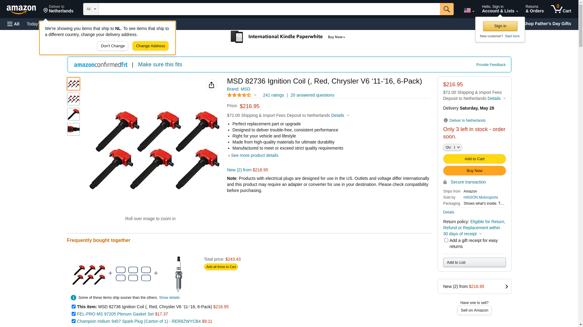 ![]() automotivestuff.com | MSD-82736 | 1 | -2 | 1 | 1 @ $227.95 |