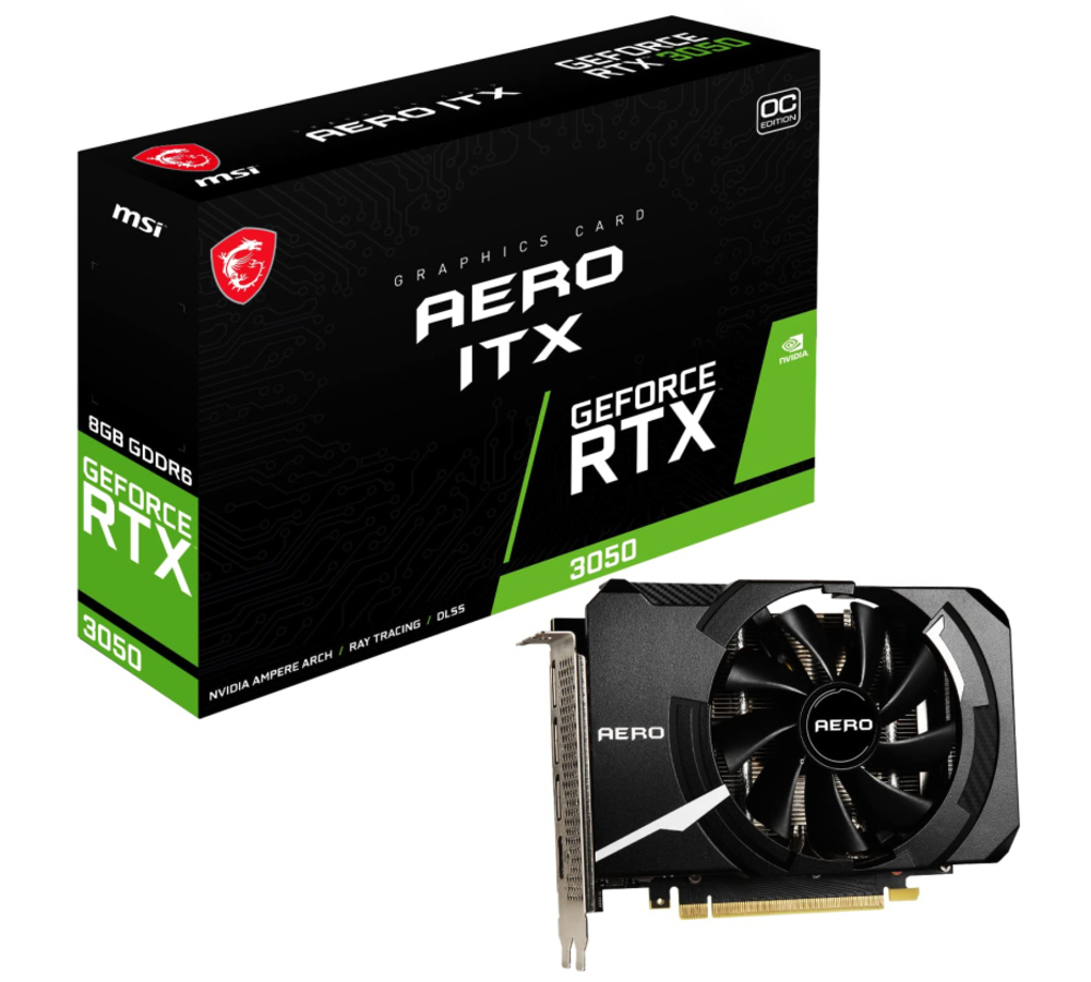 G3050AITX8C | MSI - NVIDIA - G3050AITX8C | RTX 3050 AERO ITX 8G OC RTX 3050 GDDR6 8G, 10 to 15 weeks lead time | Consutronix.com