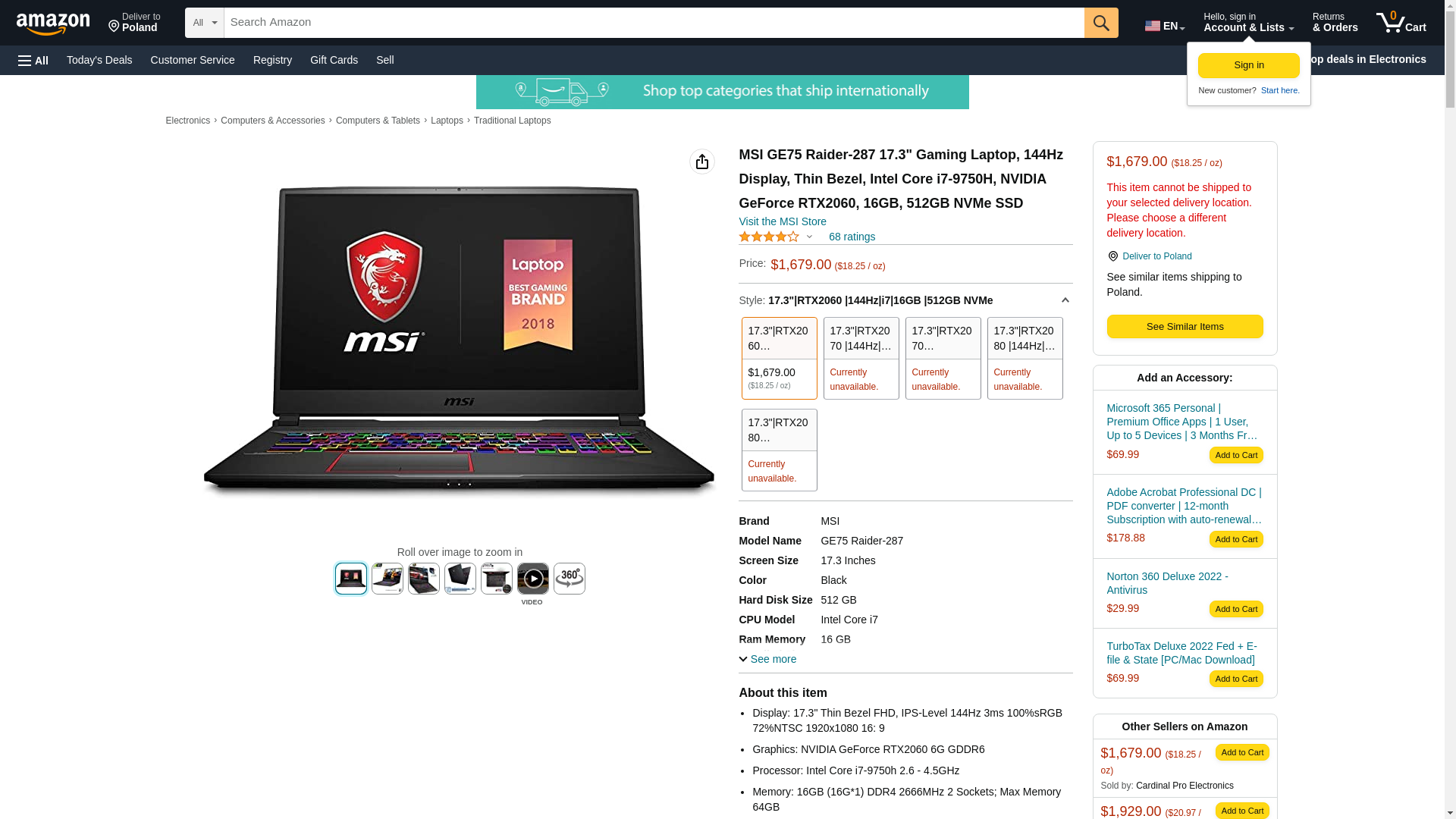 GE75 Raider-287 17.3" Intel Core i7-9750H 2.6GHz/16GB DDR4/512GB