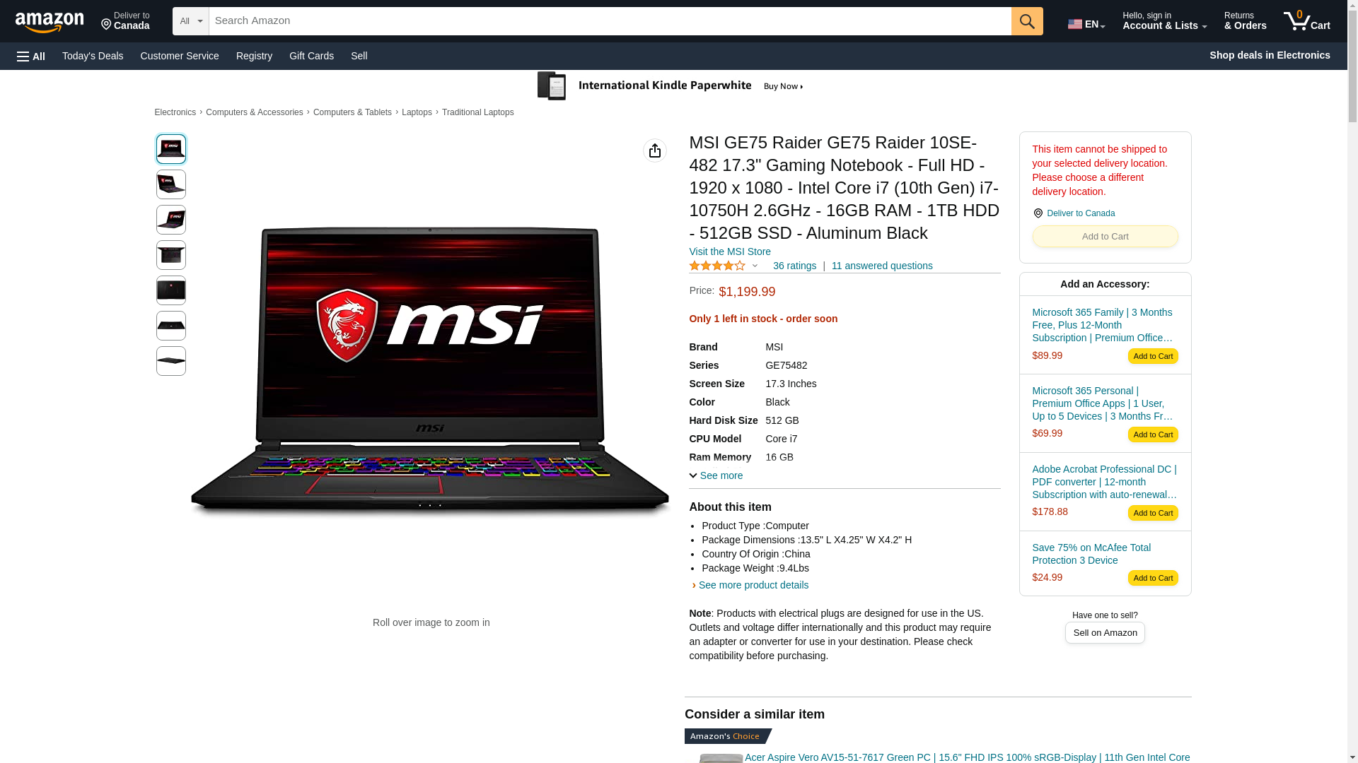 MSI GE75 Raider GE75 Raider 10SE-482 17.3" Gaming Notebook - Full HD - 1920 x 1080 - Intel Core i7 (10th Gen) i7-10750H 2.6GHz - 16GB RAM - 1TB HDD - 512GB SSD - Aluminum Black