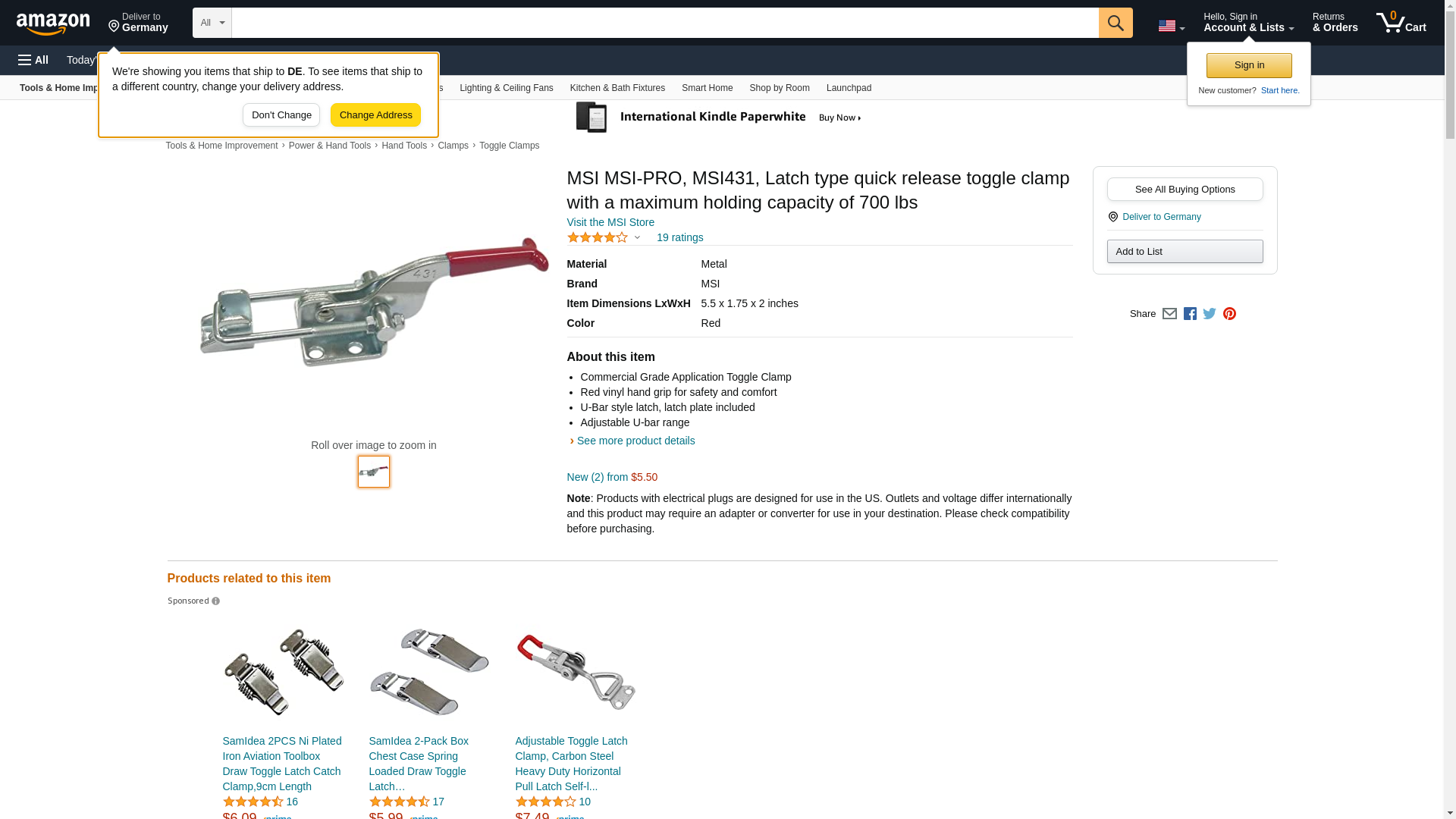 | Feature | MSI-PRO, MSI431 Latch type quick release toggle clamp |
