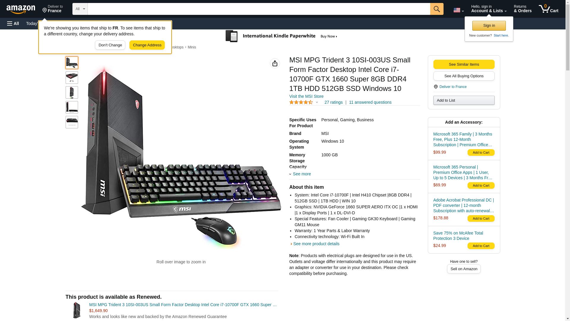 MSI MPG Trident 3 10SI-003US Small Form Factor Desktop Intel Core i7-10700F GTX 1660 Super 8GB DDR4 1TB HDD 512GB SSD Windows 10