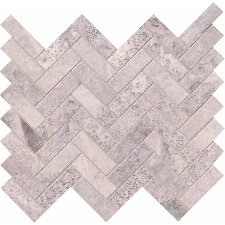 Silver Travertine Herringbone Sample Honed Travertine Mesh-Mounted Mosaic Tile