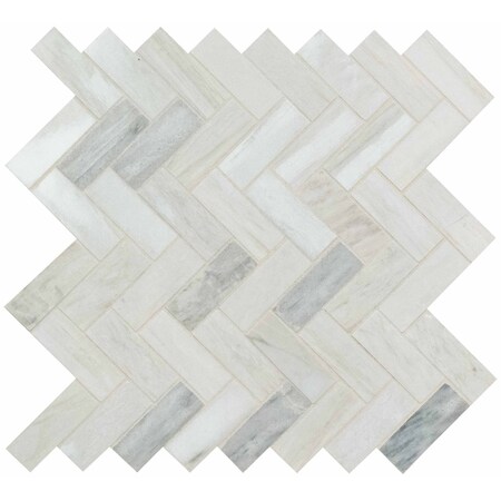 Angora Herringbone SAMPLE Polished Marble Mesh-Mounted Mosaic Tile