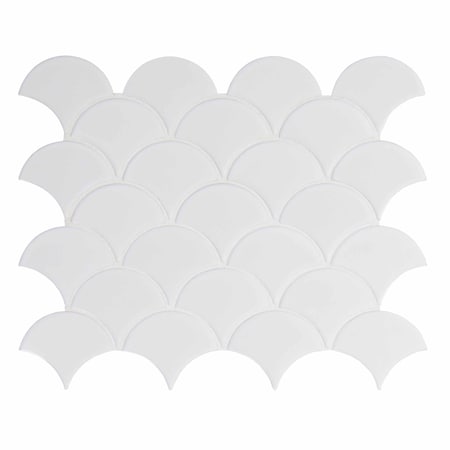 Retro Scallop Bianco Sample Glossy Porcelain Mesh-Mounted Mosaic Tile