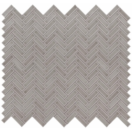 Dove Gray Herringbone Sample Glossy Ceramic Mesh-Mounted Mosaic Tile