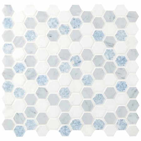 Azula Hexagon SAMPLE Polished Marble Mesh-Mounted Mosaic Tile