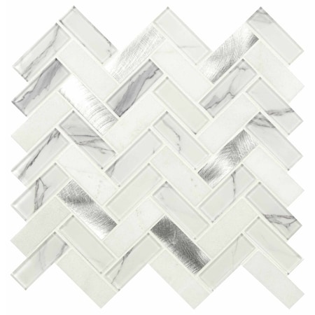 Bytle Bianco Herringbone Sample Sample Textured Multi-Surface Mesh-Mounted Mosaic Tile