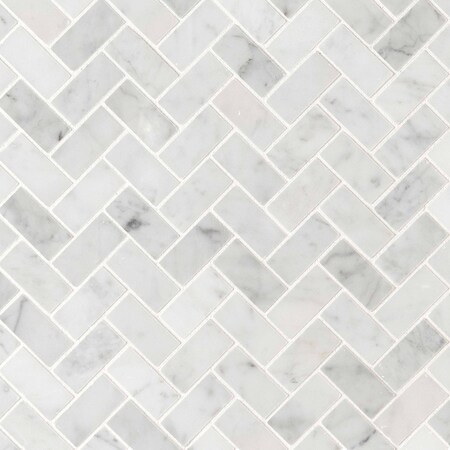 Carrara White Herringbone Honed Sample Marble Mesh-Mounted Mosaic Tile