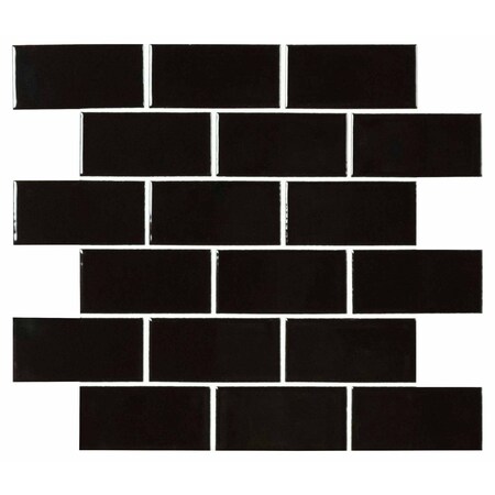 Black Sample Glossy Porcelain Mesh-Mounted Mosaic Tile
