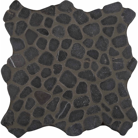 Black Pebbles Sample Tumbled Marble Mesh-Mounted Mosaic Tile