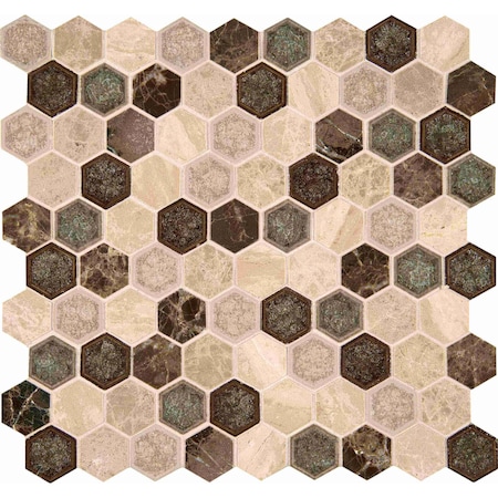 Kensington Hexagon SAMPLE Glass And Stone Mesh-Mounted Mosaic Wall Tile