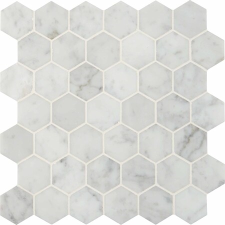 Carrara White Hexagon Sample Polished Marble Mesh-Mounted Mosaic Floor And Wall Tile