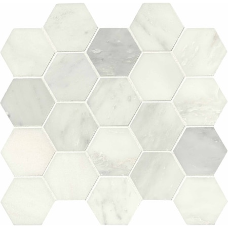 Greecian White Hexagon Sample Polished Marble Mesh-Mounted Mosaic Tile
