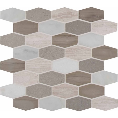 Bellagio Blend Elongated Hexagon SAMPLE Honed Marble Mesh-Mounted Mosaic Tile