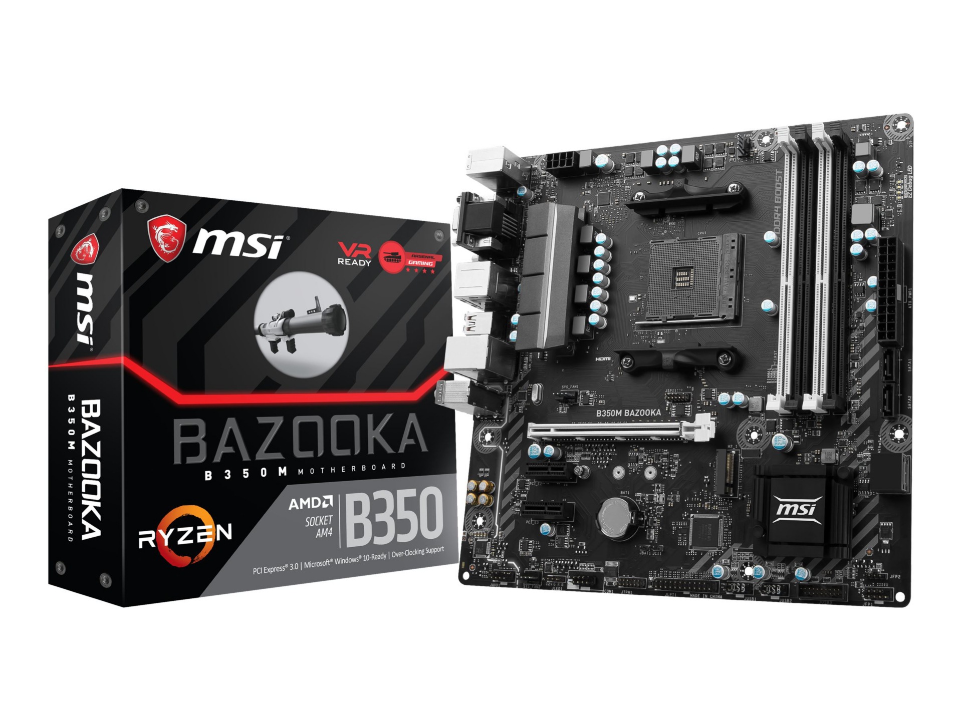 | Feature | MSI Motherboard B350M BAZOOKA AMD B350 Chipset AM4 DDR4 Memory 1 x PCI Express 3.0 x 16 Micro ATX Retail |